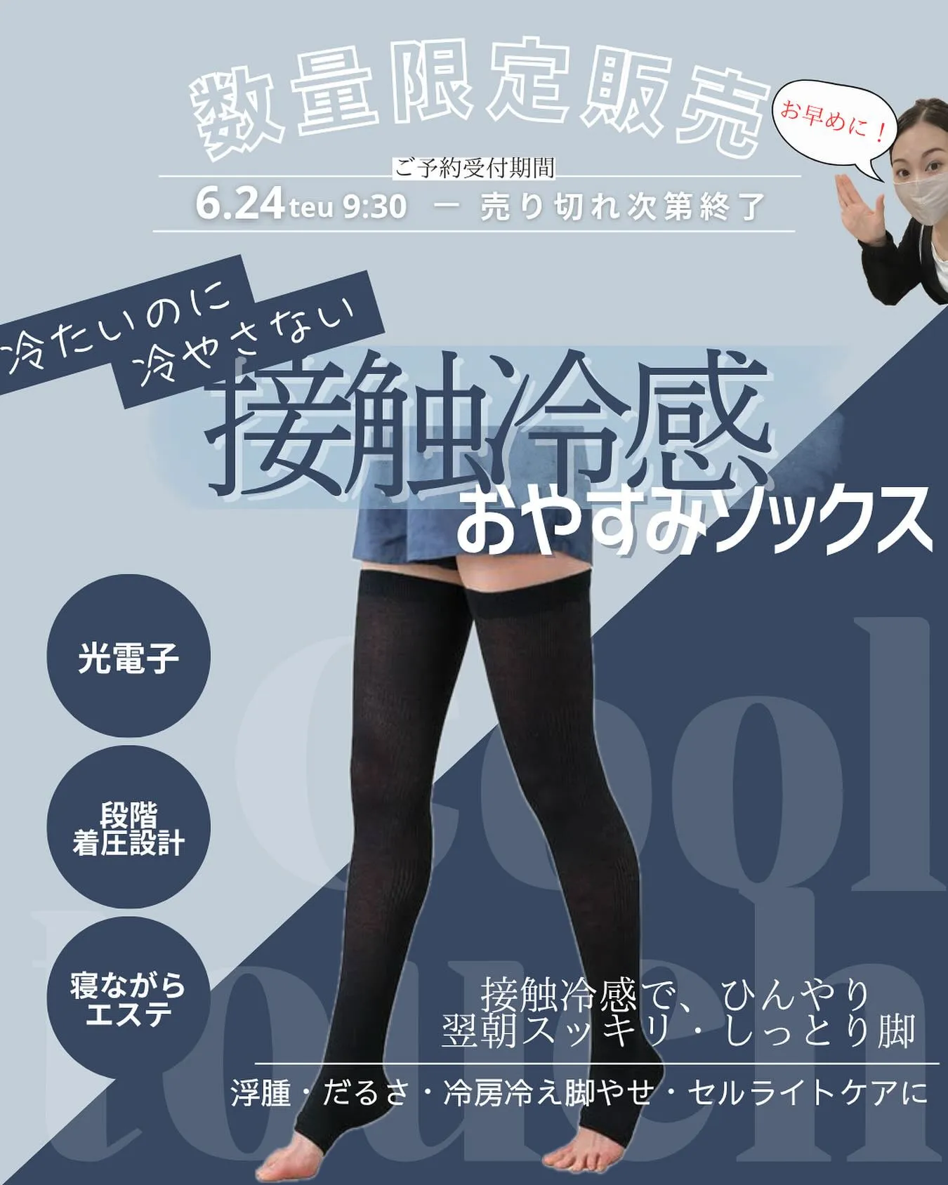 ヒンヤリ接触冷感のおやすみソックスが